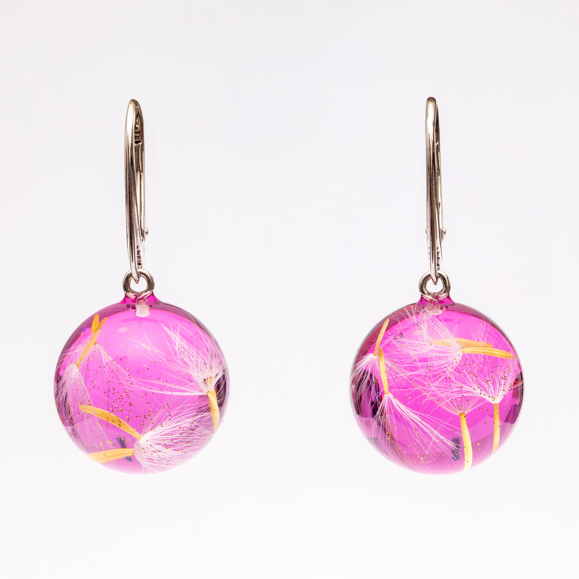 Produkt: Kolczyki z rubinem i nasionami dmuchawca zatopionymi w żywicy