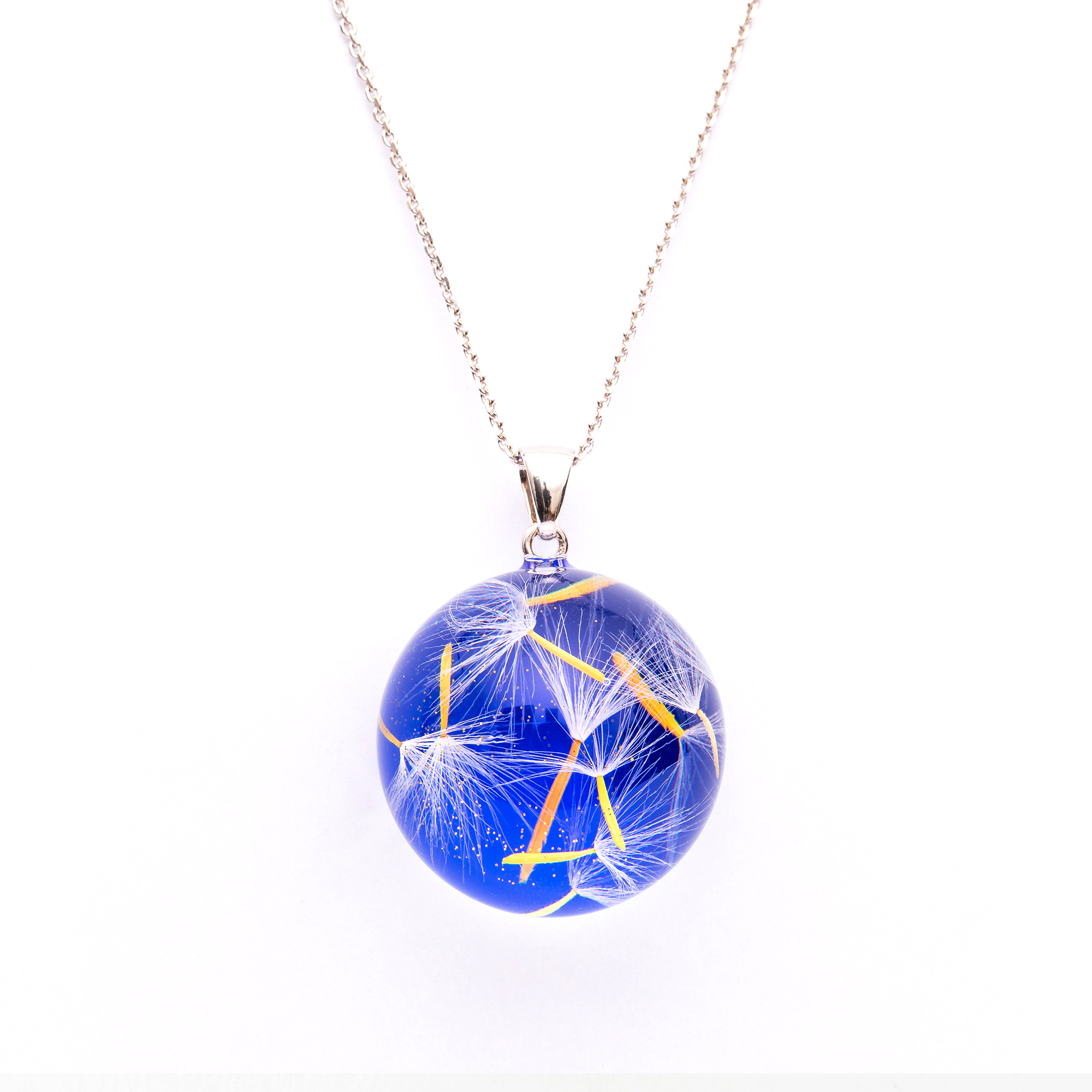 Produkt: Naszyjnik z lapis lazuli i nasionami dmuchawca zatopionymi w żywicy