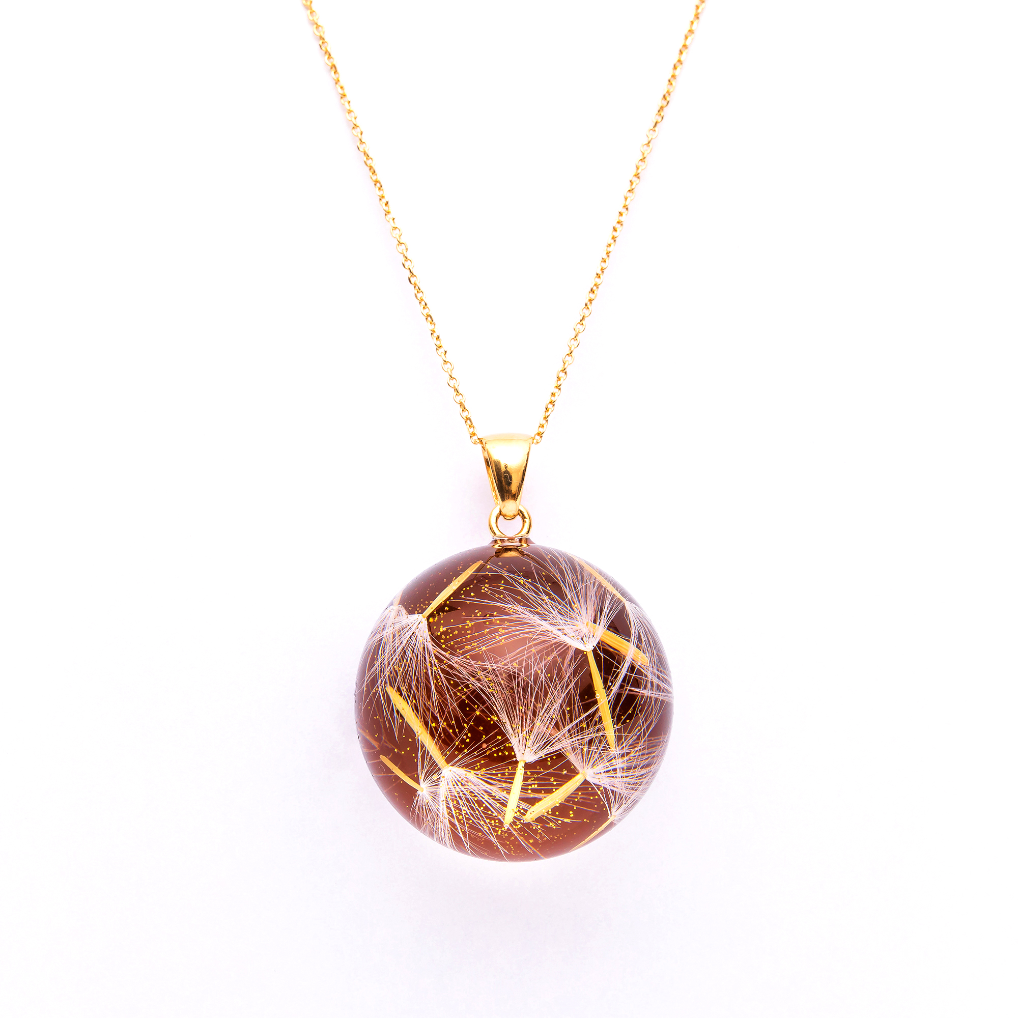 Produkt: Naszyjnik z kamieniem słonecznym i nasionami dmuchawca zatopionymi w żywicy