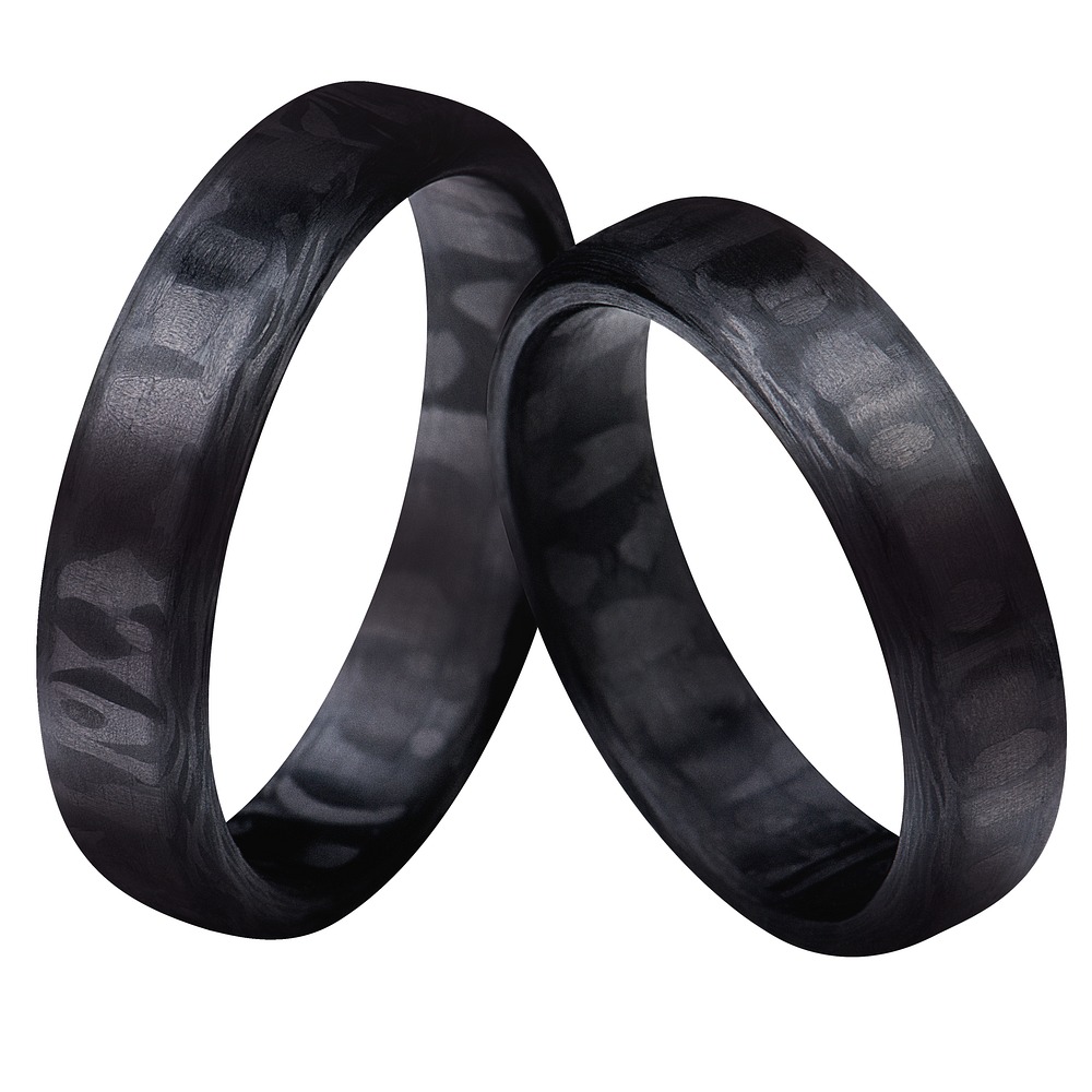 Każda obrączka jest robiona na zamówienie i jest niepowtarzalna. Występują subtelne różnice w układzie włókien i odcieniu materiału.