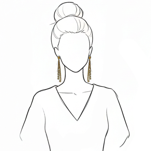 Długie, smukłe kolczyki potrafią wysmuklić twarz i wydłużyć szyję – sprawdzą się idealnie przy spiętych włosach.